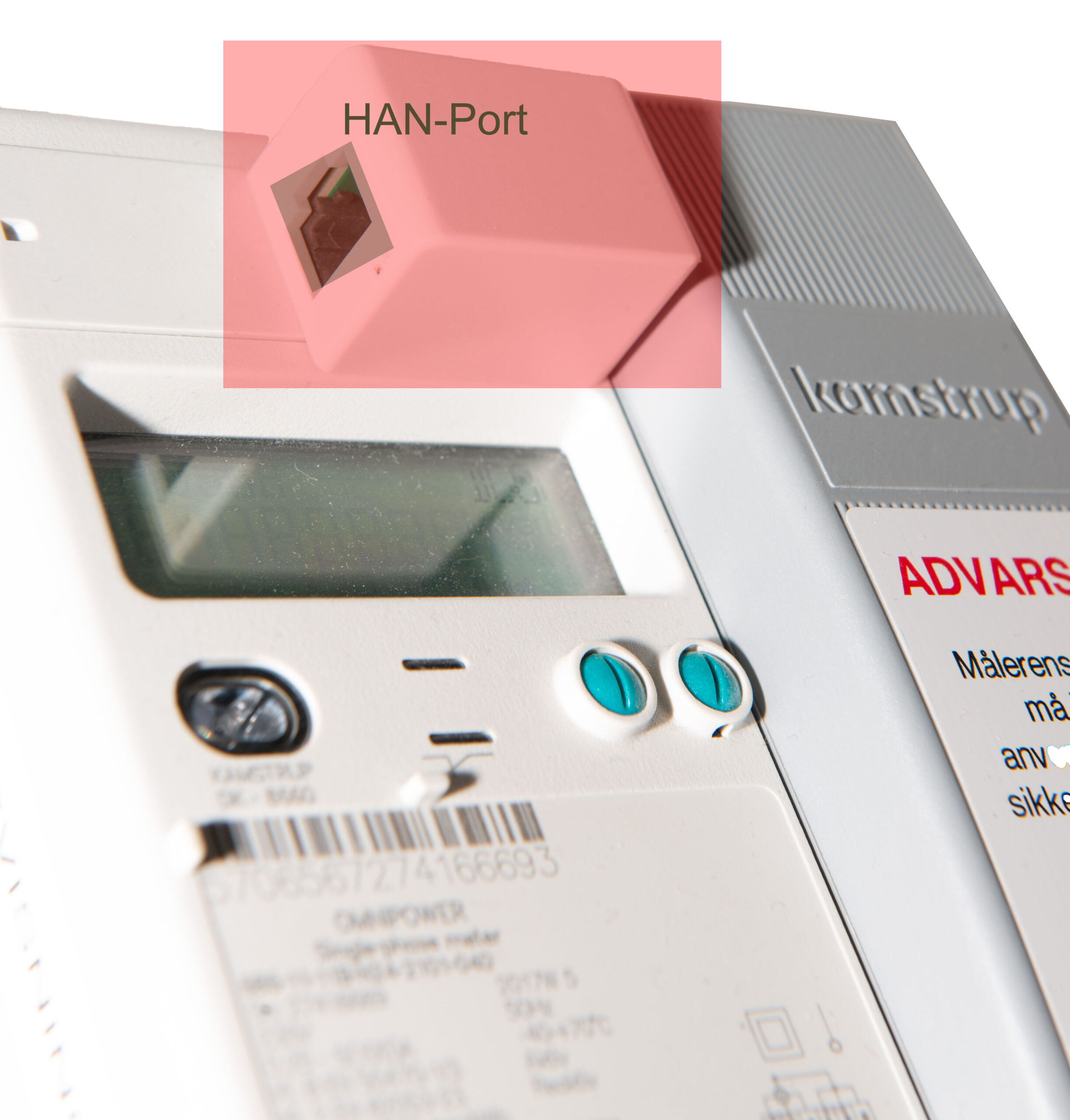 HAN-porten ser ut som en nettverksport eller gammel telefonkontakt av typen RJ45 og sitter over displayet på strømmåleren din:
