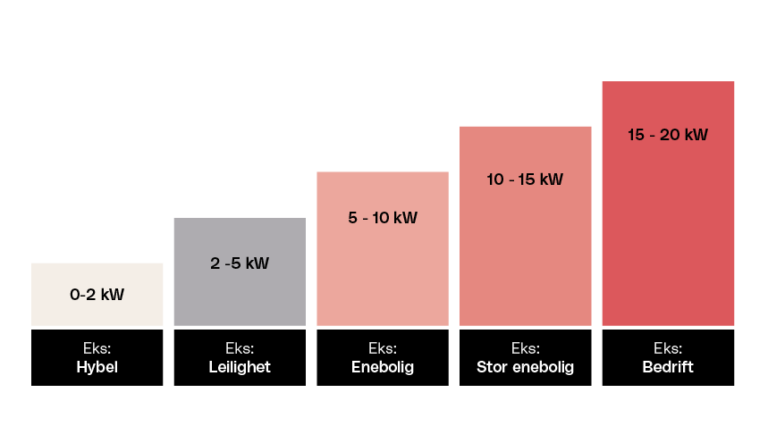 Figuren viser effektintervallene for kapasitetsleddet, og typisk maksimal timeverdi for ulike boligtyper.